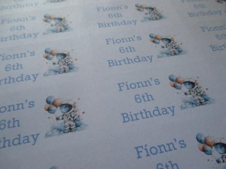 24 Self Adhesive Birthday Labels – Astronaut Space design. Labels can be printed with any name, text or age of your choice. Each label measures 6.3cm x 3.4cm and will be supplied on 1 A4 sheet.