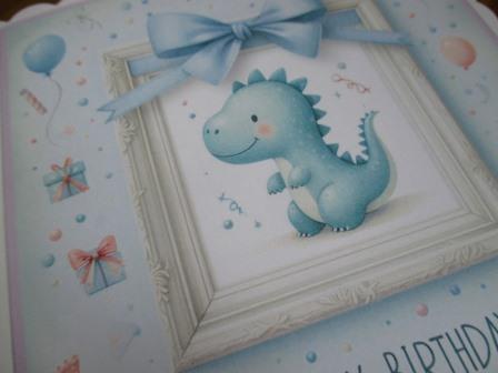 Baby Dinosaur Lilac Frame Personalised Birthday Card