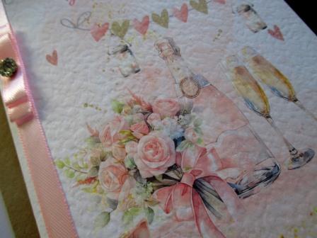 This card can be personalised with couple’s names and date of Engagement. Champagne, Flowers & Solitaire Ring Engagement design, printed on white hammered 300gsm thick card. Finished with satin ribbon, sparkly gems and sparkly embellishment to ribbon bow. Insert is white smooth 180gsm card and is blank for you to write your own message. Card is A5 in size and is supplied with natural kraft envelope.