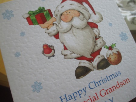 This card can be personalised with any text of your choice. Cheeky Santa design, printed with text of choice onto high quality white 300gsm card. Card measures 14.7cm x 14.7cm.