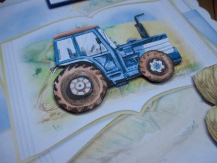 Farm Tractor Bales Blue 3D Personalised Birthday Card