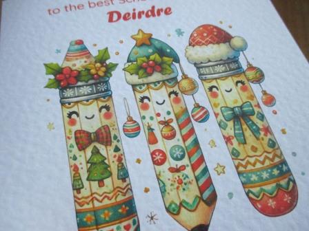 Festive Pencils School Secretary or Receptionist Personalised Christmas Card