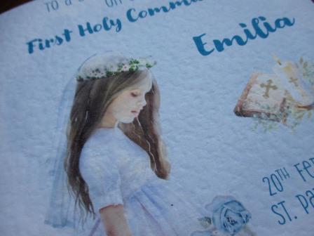 Girl Blue Flowers Personalised Communion Card