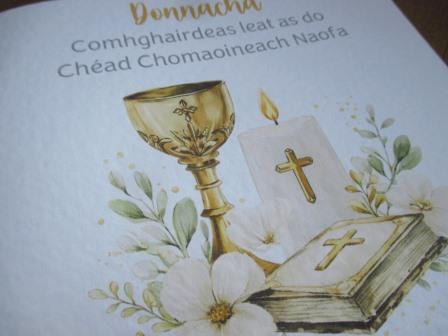 Golden Chalice GAELIC Unisex Personalised Communion Card