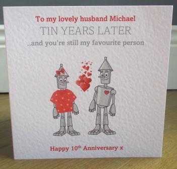 Tin Man Couple Personalised 10th Wedding Anniversary Card