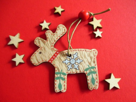 Personalised Wooden Snowflake Reindeer Christmas Tree Decoration. Perfect for a stocking filler. Personalised in black with any name on the front. Name is hand-written so can include fadas.